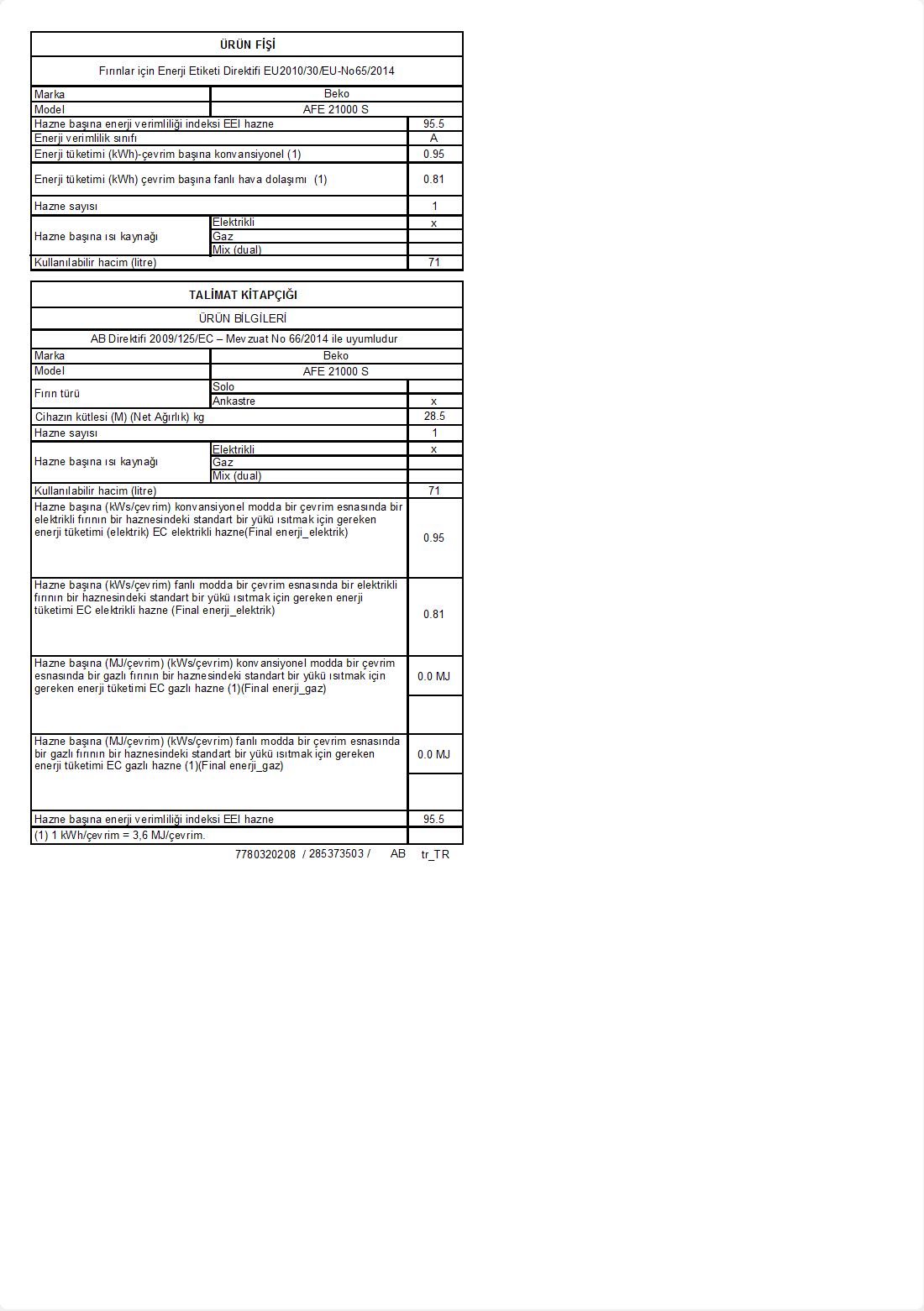 • AFE 21000 S Ankastre Fırın