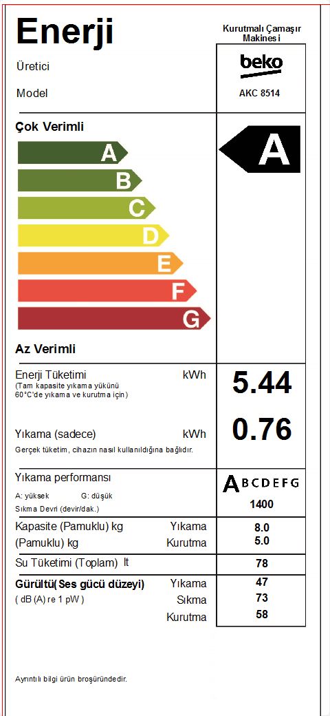 • AKC 8514 Ankastre Kurutmalı Çamaşır Makinesi