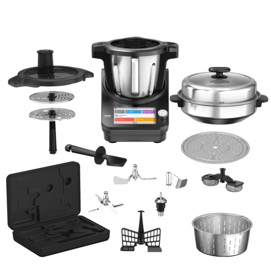 ThermoExpert, tek bir cihazda çok sayıda mutfak fonksiyonunu bir araya getirerek günlük yemek hazırlığını daha pratik hâle getiren akıllı bir mutfak robotu olarak öne çıkar. Doğrama, karıştırma, yoğurma ve rendeleme gibi hazırlık aşamalarının yanı sıra; sote, buharda pişirme, güveç, sos ve reçel yapımı gibi pişirme süreçlerini de destekleyerek mutfakta uçtan uca bir deneyim sunar. Bu sayede ThermoExpert, farklı tariflerde güvenle ilerlemeyi sağlayan, yemek yapımını kolaylaştıran bütüncül bir çözüm haline gelir.