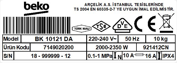 Ses Seviyesi-Yıkama/Sıkma (dBA)