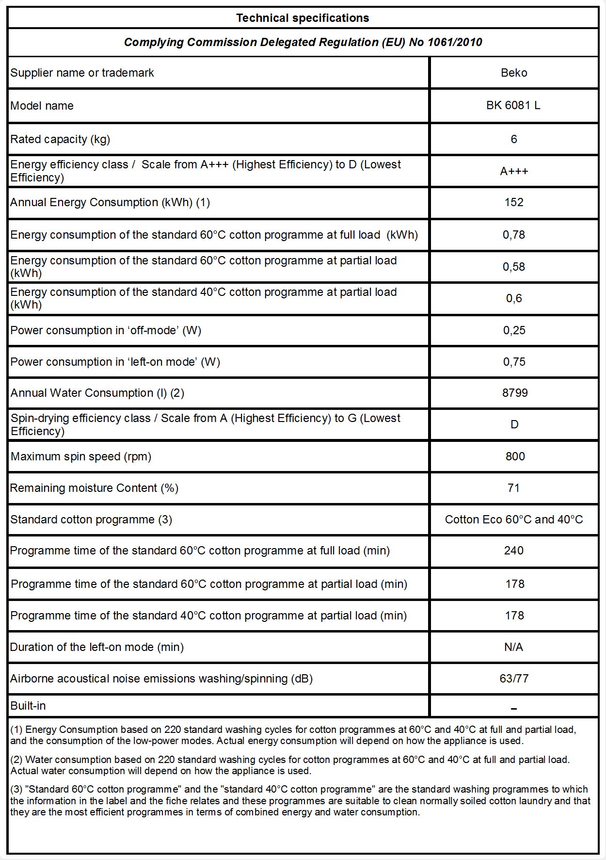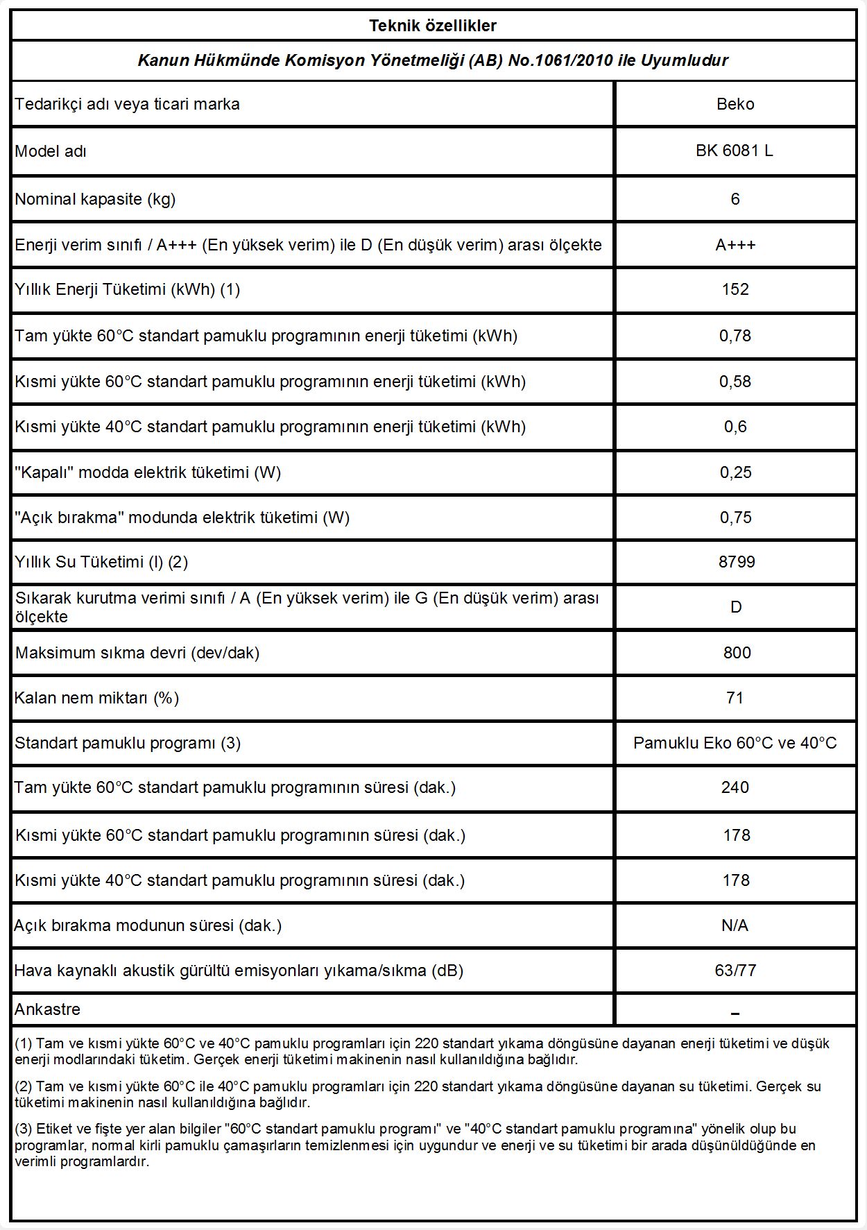 Yıllık Elektrik Tüketimi (kWh) (220 Yıkama)