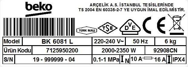 Ses Seviyesi-Yıkama/Sıkma (dBA)