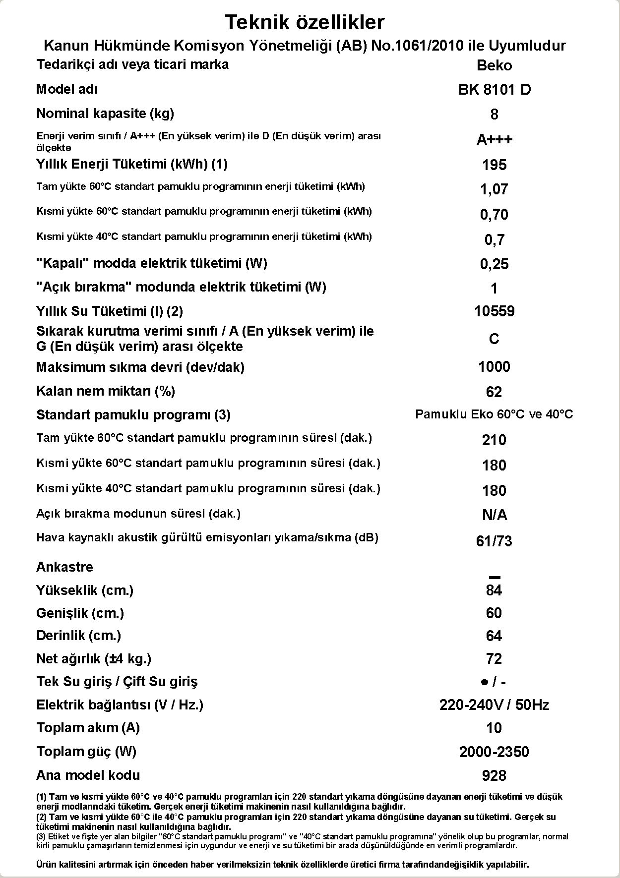 • BK 8101 D Çamaşır Makinesi