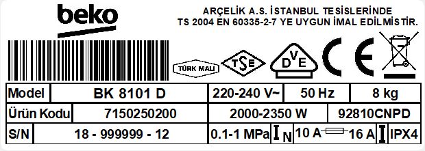Ses Seviyesi-Yıkama/Sıkma (dBA)