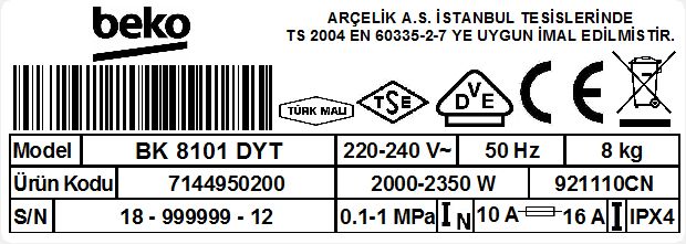 Yıllık Elektrik Tüketimi (kWh) (220 Yıkama)