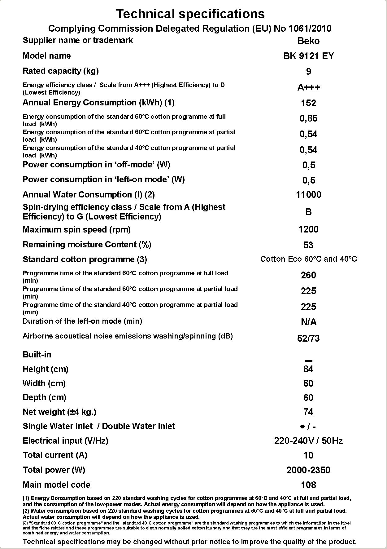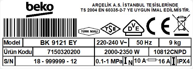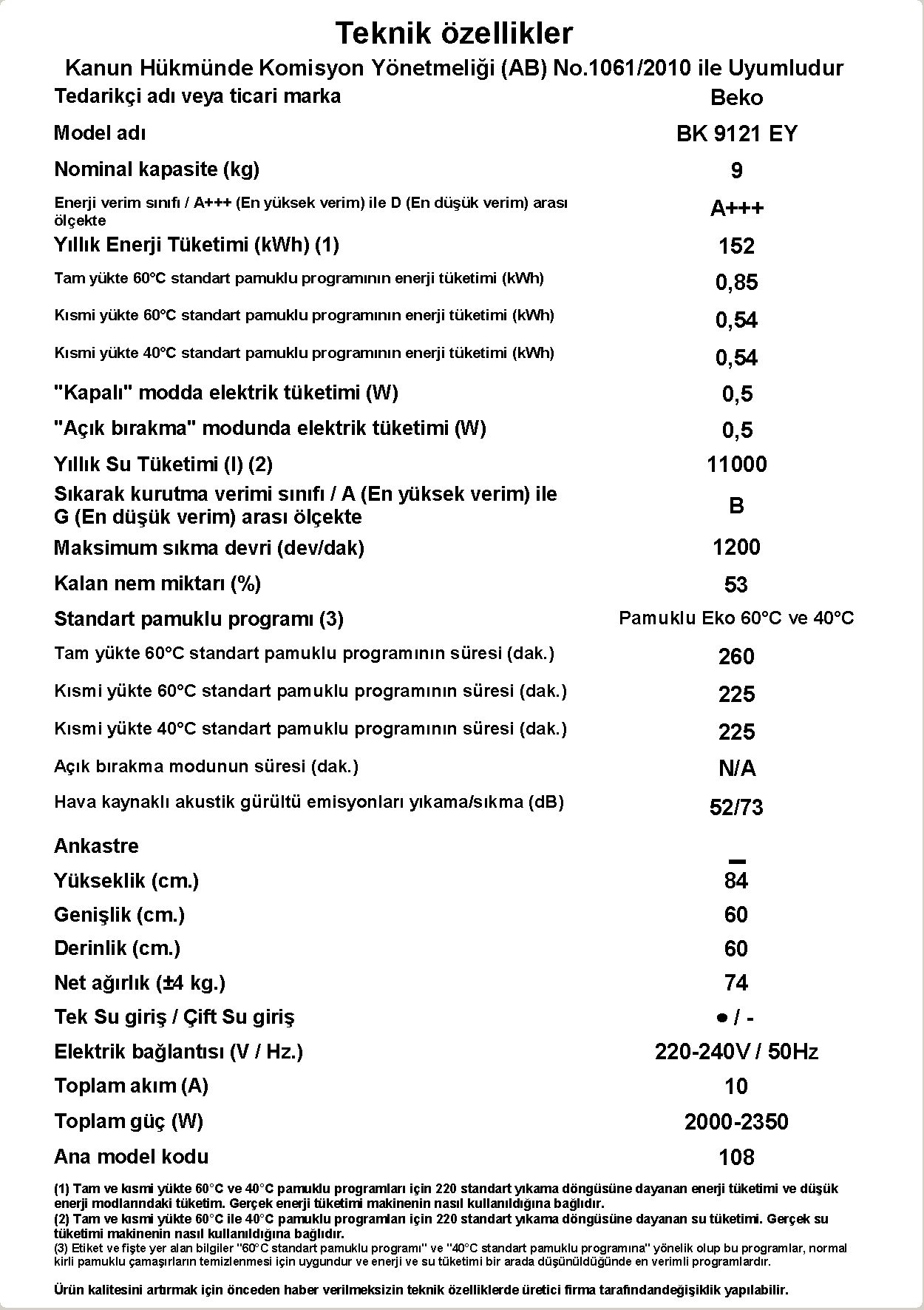 Yıllık Elektrik Tüketimi (kWh) (220 Yıkama)