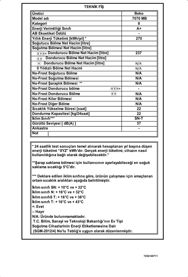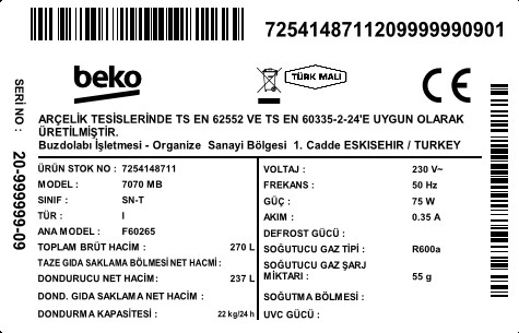 • 7070 MB Çekmeceli Derin Dondurucu