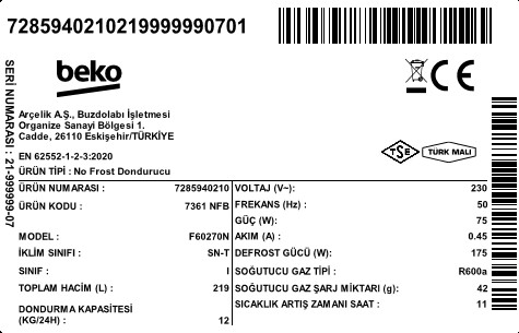 Dondurucu Bölme Hacmi (L)