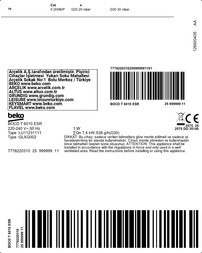• BOCD T 6010 ESR Gazlı Cam Tablalı Ocak