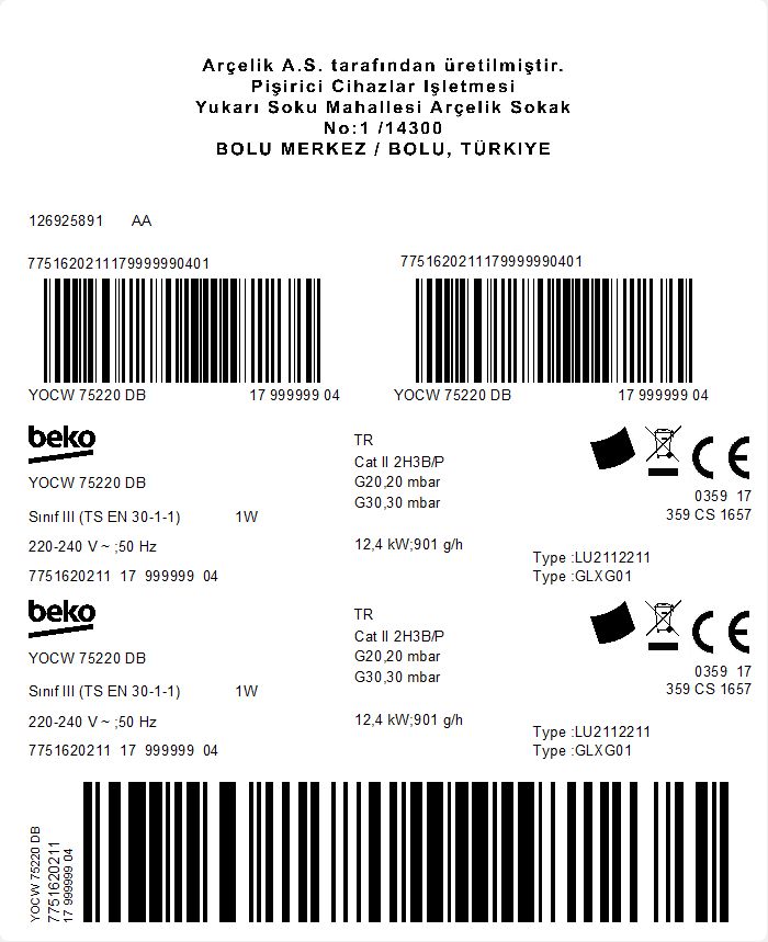 • YOCW 75220 DB Gazlı Cam Tablalı Ocak