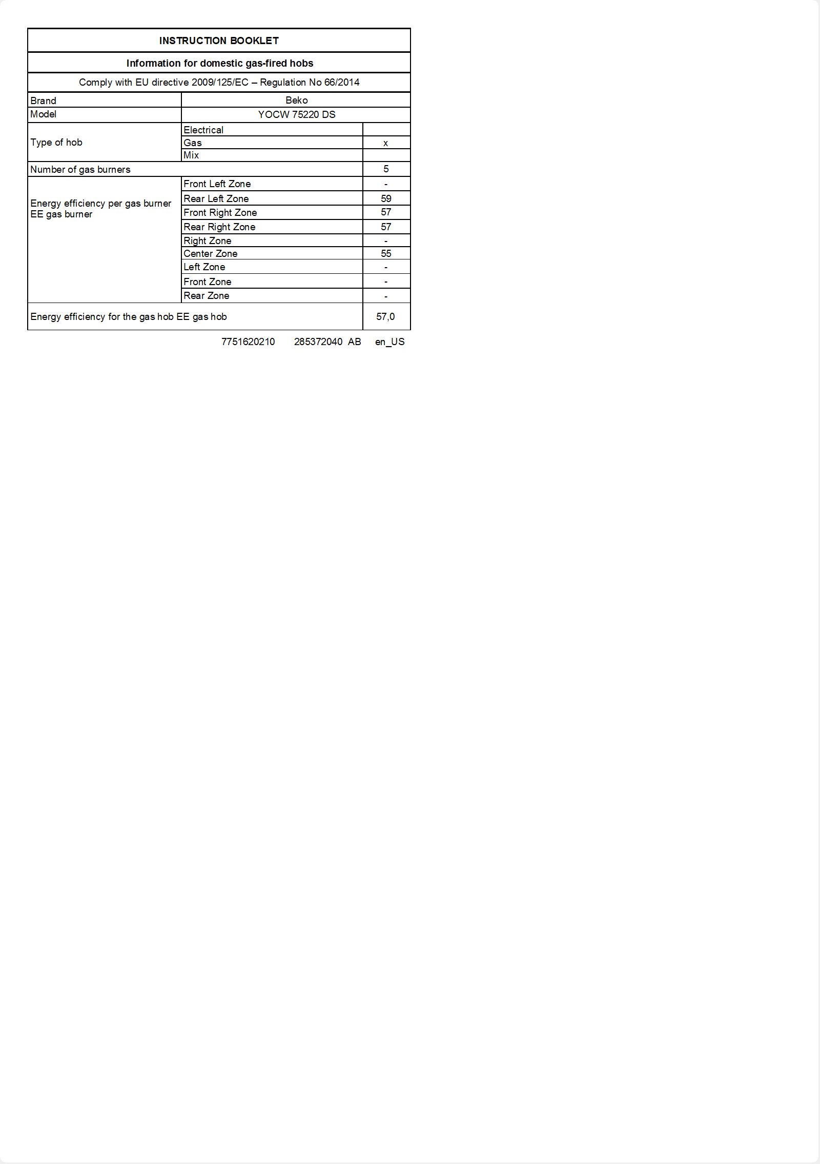 • YOCW 75220 DS Gazlı Cam Tablalı Ocak