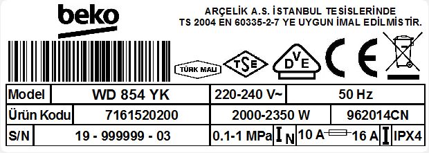 • WD 854 YK Kurutmalı Çamaşır Makinesi
