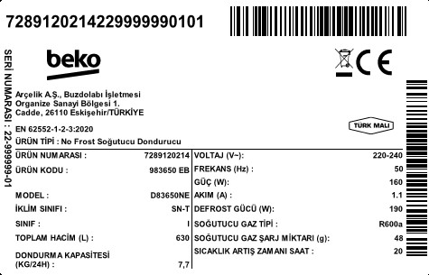 Ürününüzün kapısı 1 dakika süre açık kaldığında uyarı sesi duyulur. Dolap kapısını kapattığınızda veya varsa, ekran düğmelerinden herhangi birine bastığınızda bu ses kesilir