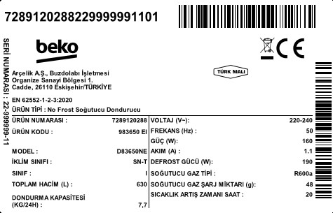Ürününüzün kapısı 1 dakika süre açık kaldığında uyarı sesi duyulur. Dolap kapısını kapattığınızda veya varsa, ekran düğmelerinden herhangi birine bastığınızda bu ses kesilir